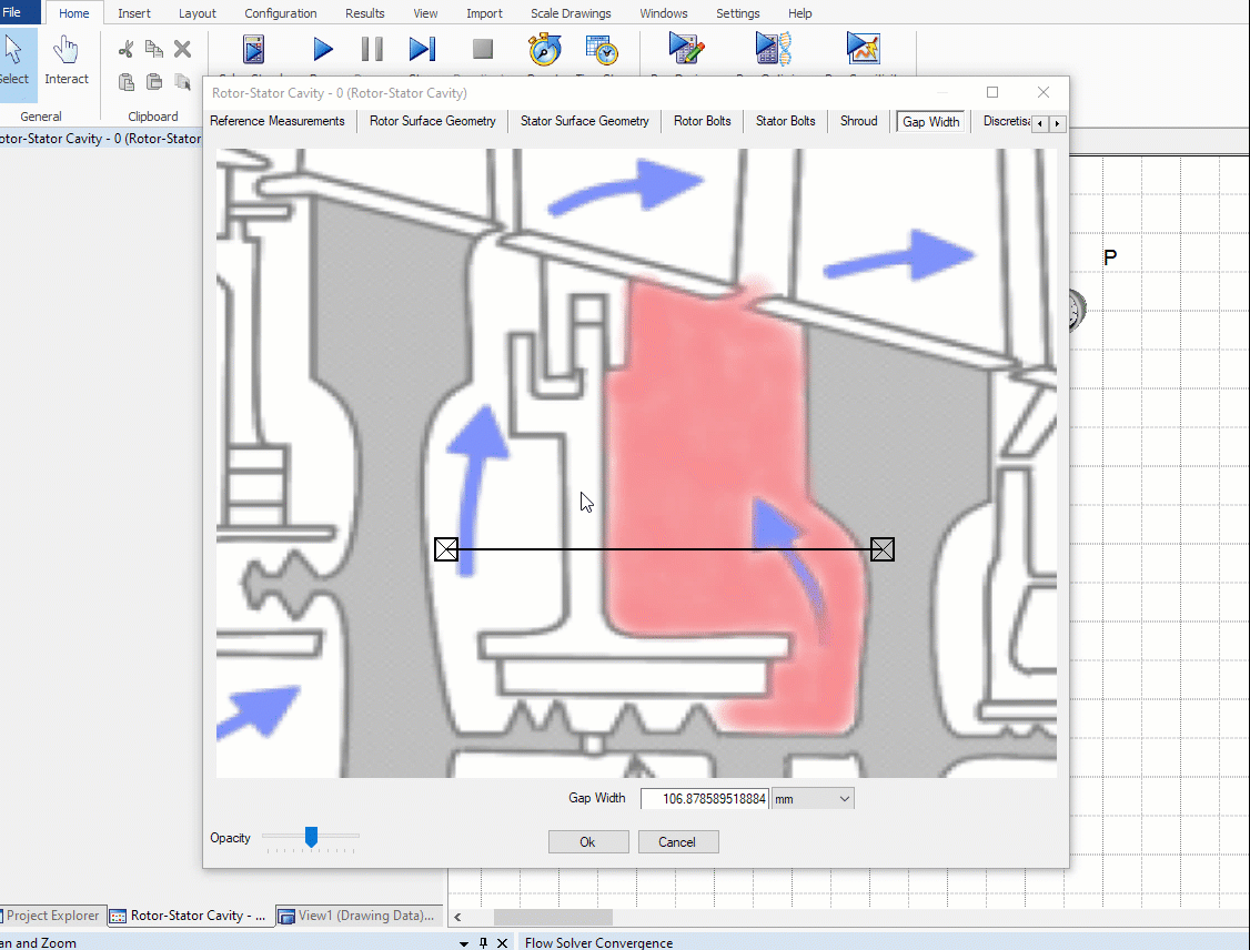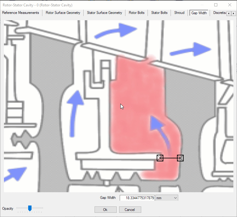If we need to model the cavity shroud this can be done in the shroud ribbon. In our demonstration today the shroud is included in the rotor and stator surface geometries. For this case we can de-select specify shroud width.