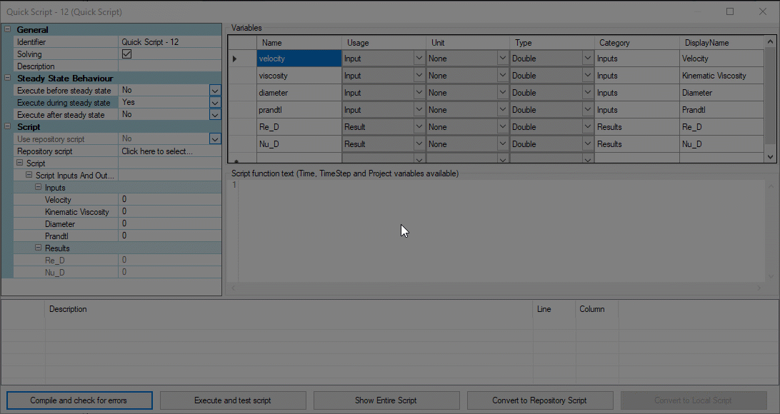 There we have it! These are now internal variables to the script. To assign them as output variables we can use the following syntax (this is all still within the Execute function).