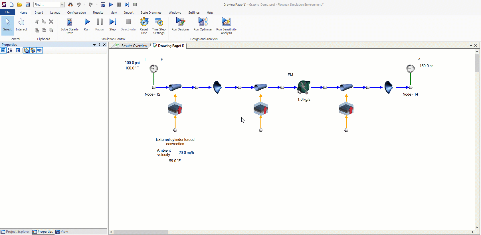 You may have noticed in the previous images that there were many data points on the graphs for each of our flow components. This is because we had each pipe modeled as 25 increments. When we add increments to our flow components Flownex will treat each component as if it were split up that number of increments – solving the conservation equations for each increment rather than once over the entire component. This is helpful when modeling long pipes, capturing pressure waves, or determining exactly where a phase change may happen. A good way to think about this is that it is essentially the same as refining a mesh in a typical finite element analysis.