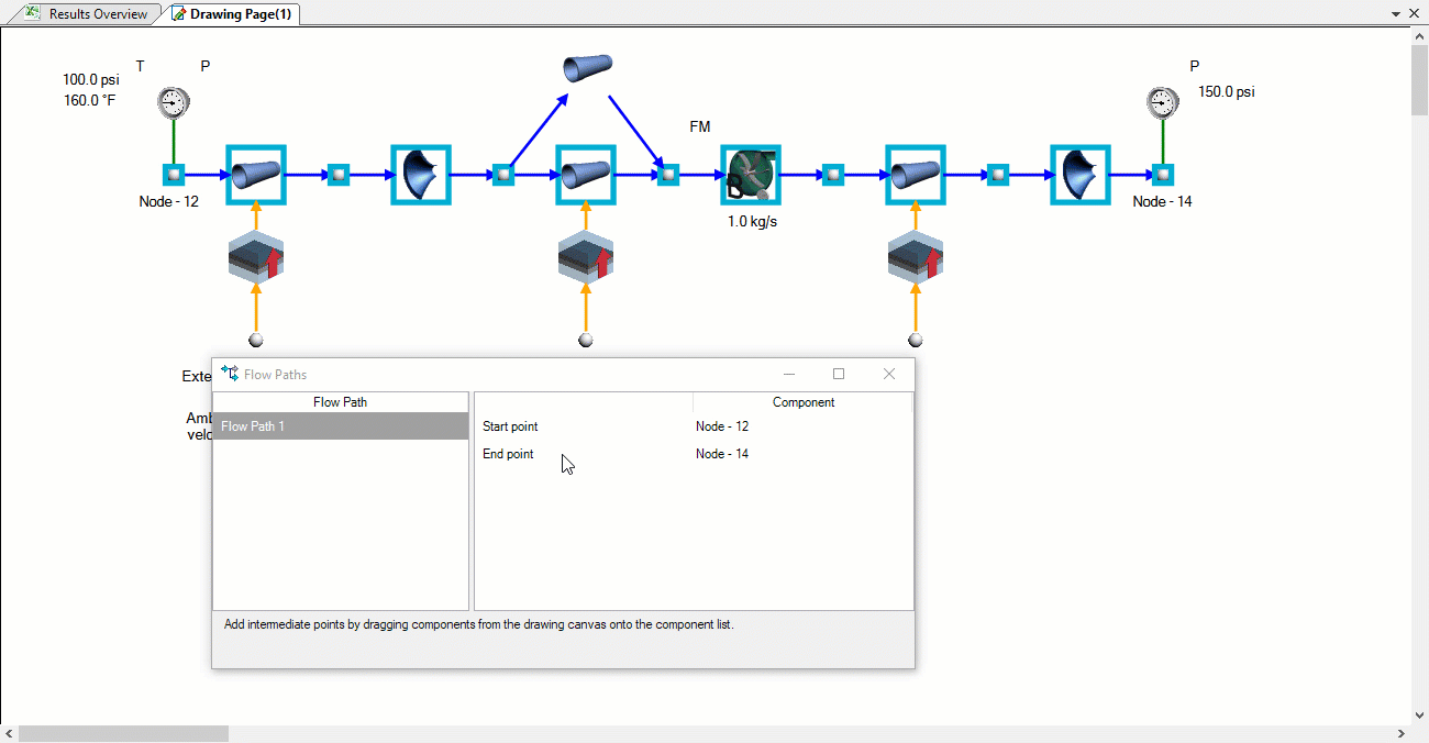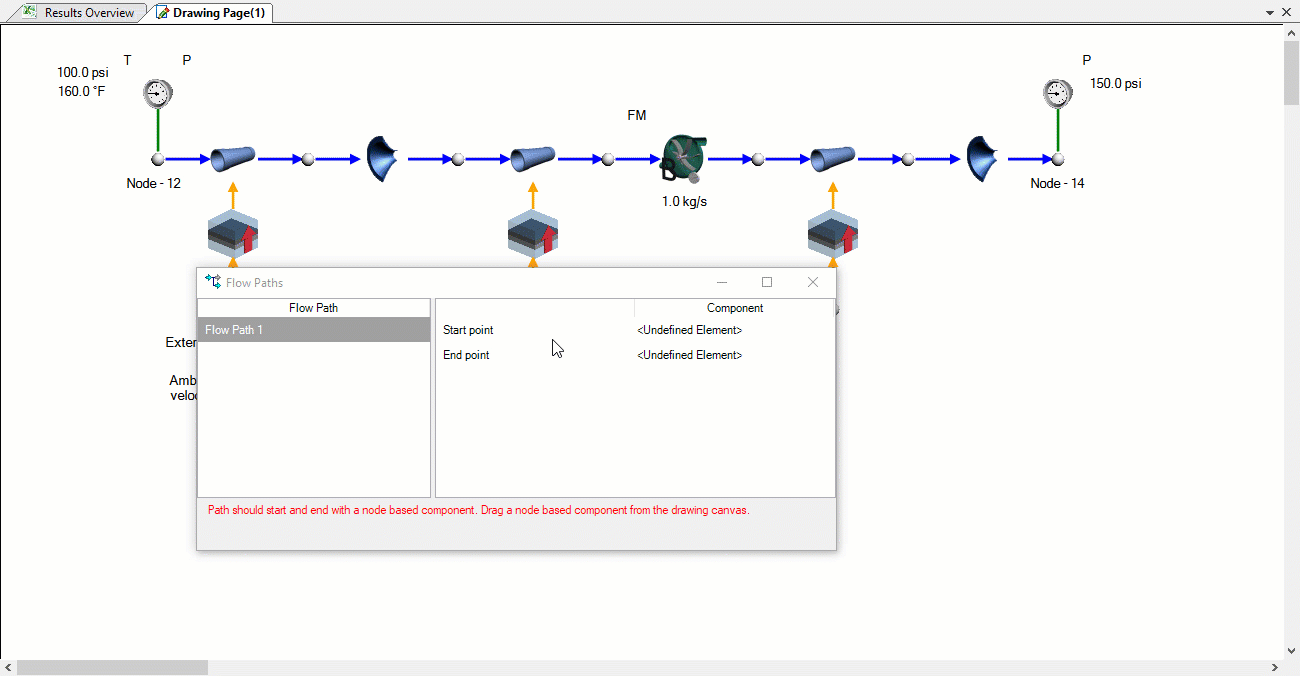 A flow path is any continuous series of flow elements and can be created by clicking “Flow Paths” in the results ribbon. Once we’ve created our new flow path we define it by choosing our start and end nodes.